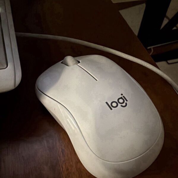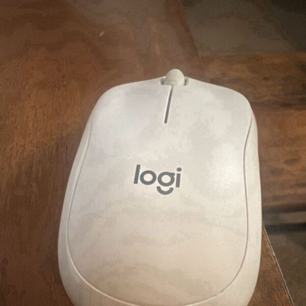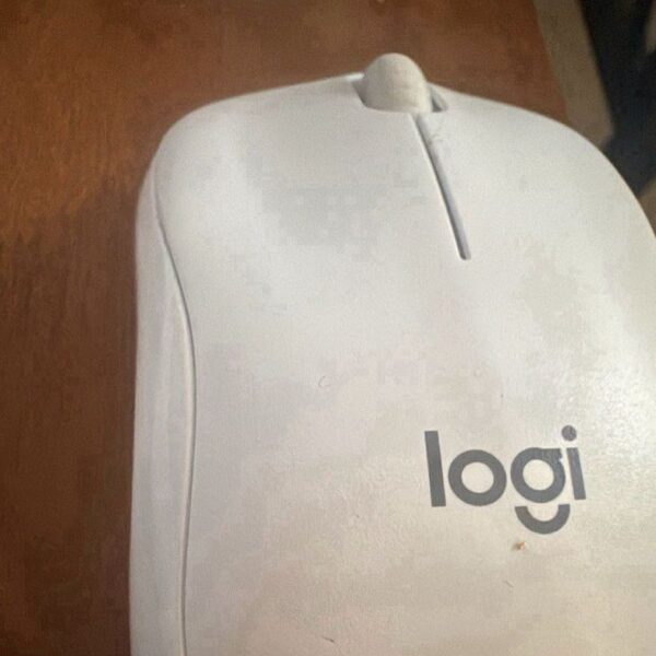 $1.20A sleek white Logitech mouse designed for comfortable use and precision.