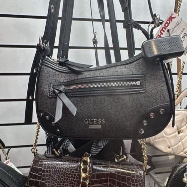 $39.99Stylish black crossbody bag with a zippered compartment and decorative studs.