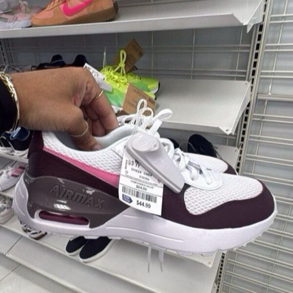 Stylish Air Max sneakers featuring a mix of white, maroon, and pink colors. Designed for comfort and performance.
