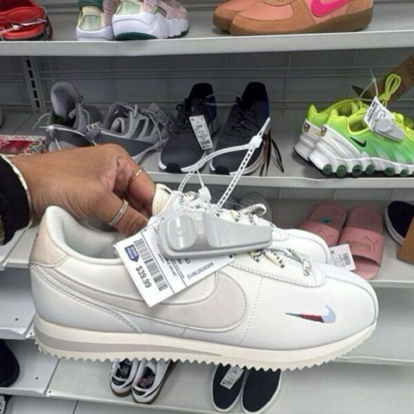 $43.99These Nike Classic Cortez sneakers feature a sleek design with a white upper and a colorful swoosh. Perfect for casual wear or athletic activities.