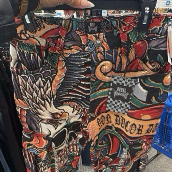These vibrant pants feature a bold, colorful design with intricate graphics, perfect for making a statement. Ideal for casual wear or adding flair to any outfit.
