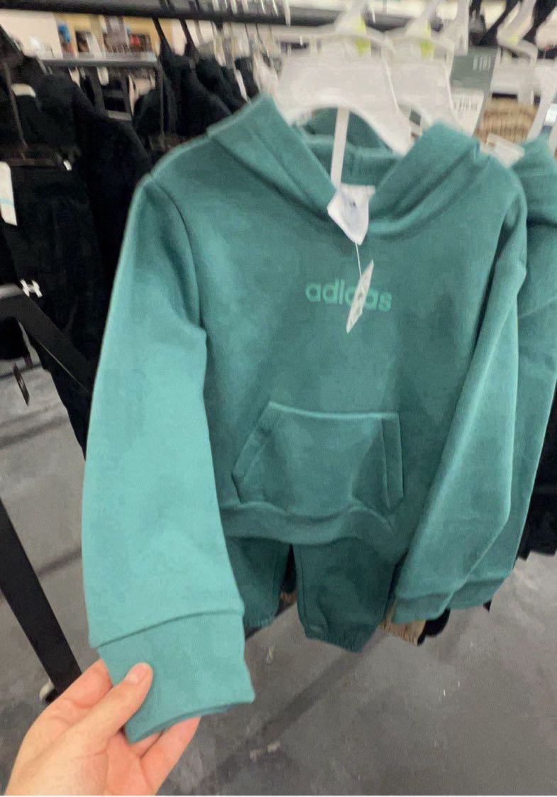A teal Adidas hoodie featuring a front pocket and a hood.