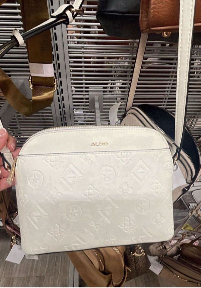 A stylish white crossbody bag featuring a textured design. Perfect for everyday use with a sleek and modern look.