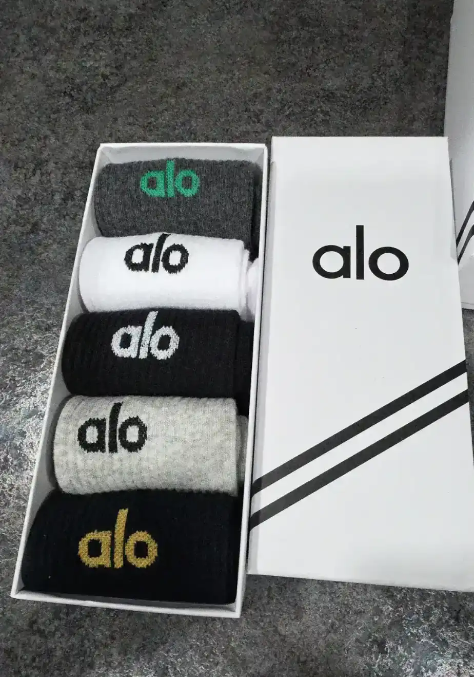 This set includes multiple pairs of stylish Alo Yoga socks in various colors, perfect for both workouts and casual wear.
