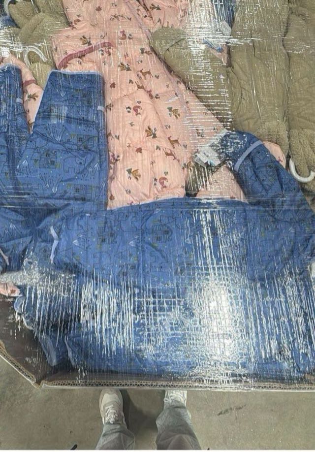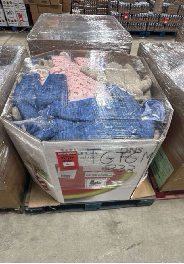 A collection of various clothing items, including tops and bottoms, neatly packed together. Ideal for bulk purchasing or donation.