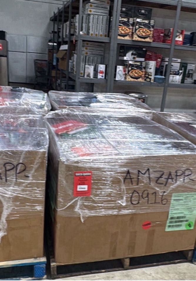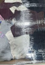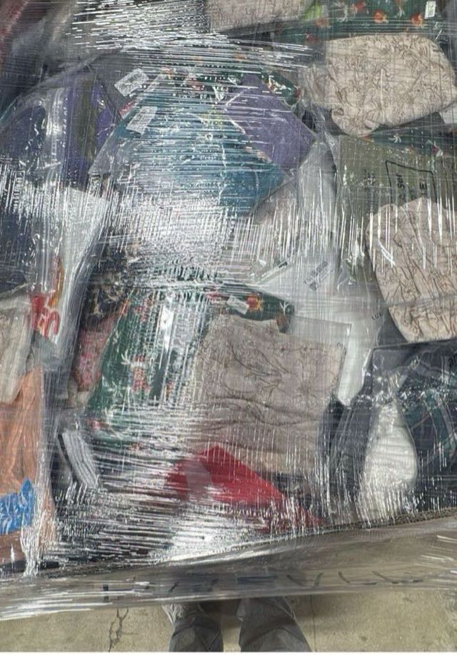 A collection of various clothing items neatly packed together. The items appear to be folded and wrapped for shipping.