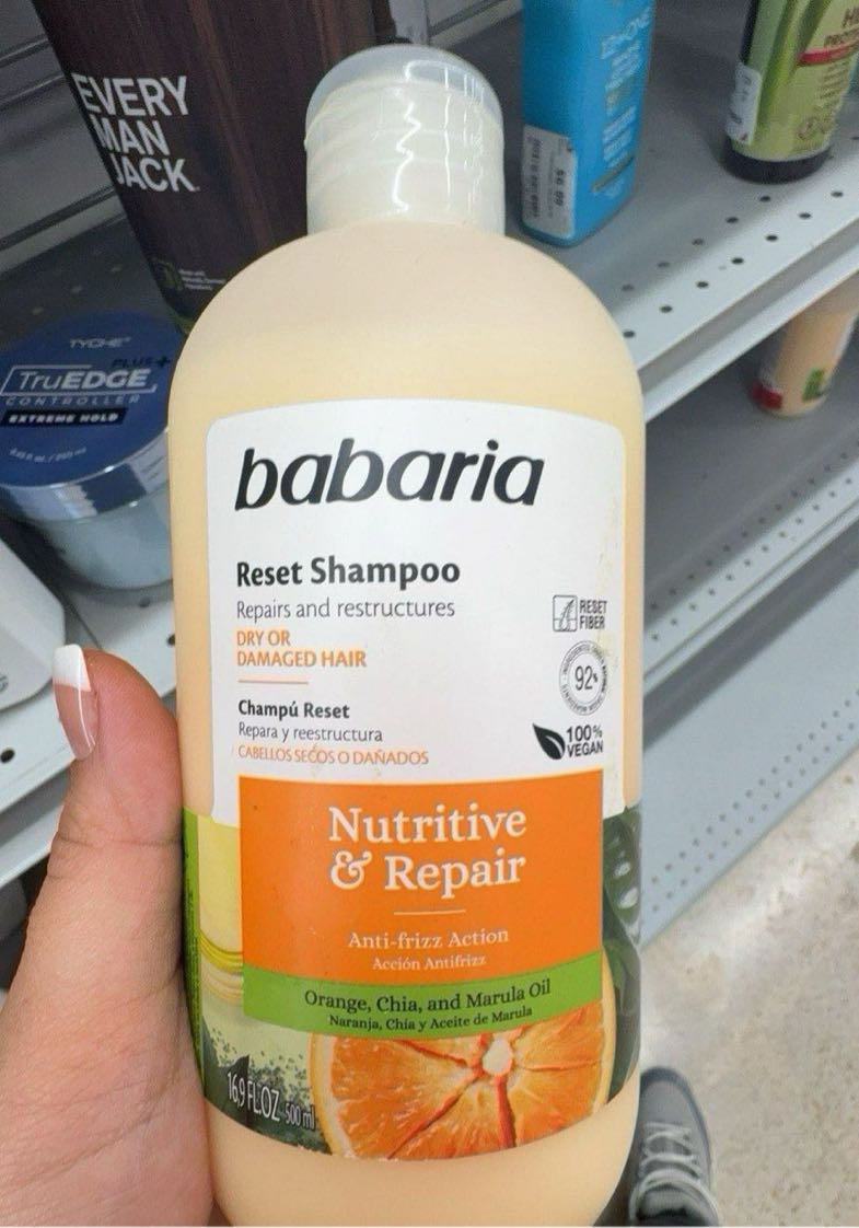 Nutritive and repair shampoo designed for dry or damaged hair, featuring orange, chia, and marula oil.