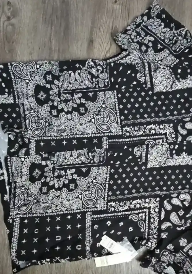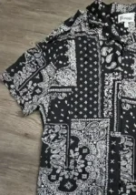 A stylish black shirt featuring a paisley print design, perfect for casual wear. Made from lightweight fabric for comfort.