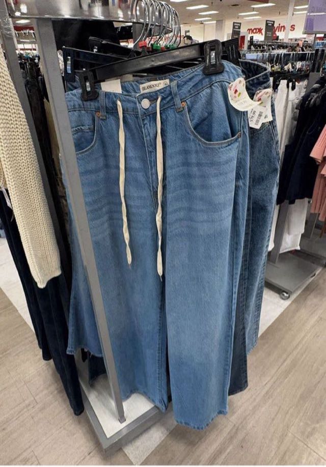 A stylish denim pant featuring a relaxed fit and drawstring detail. Size 30