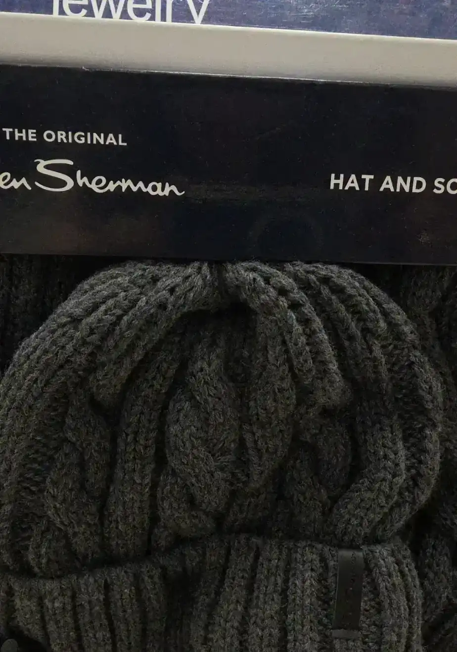 A cozy cable knit beanie in dark gray, perfect for winter wear.