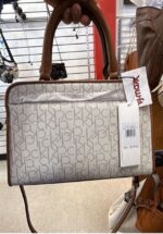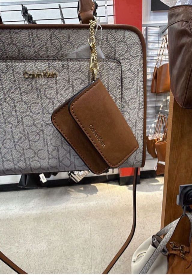 A stylish Calvin Klein handbag featuring a signature logo design and a detachable cardholder. It combines elegance with practicality, making it perfect for everyday use.
