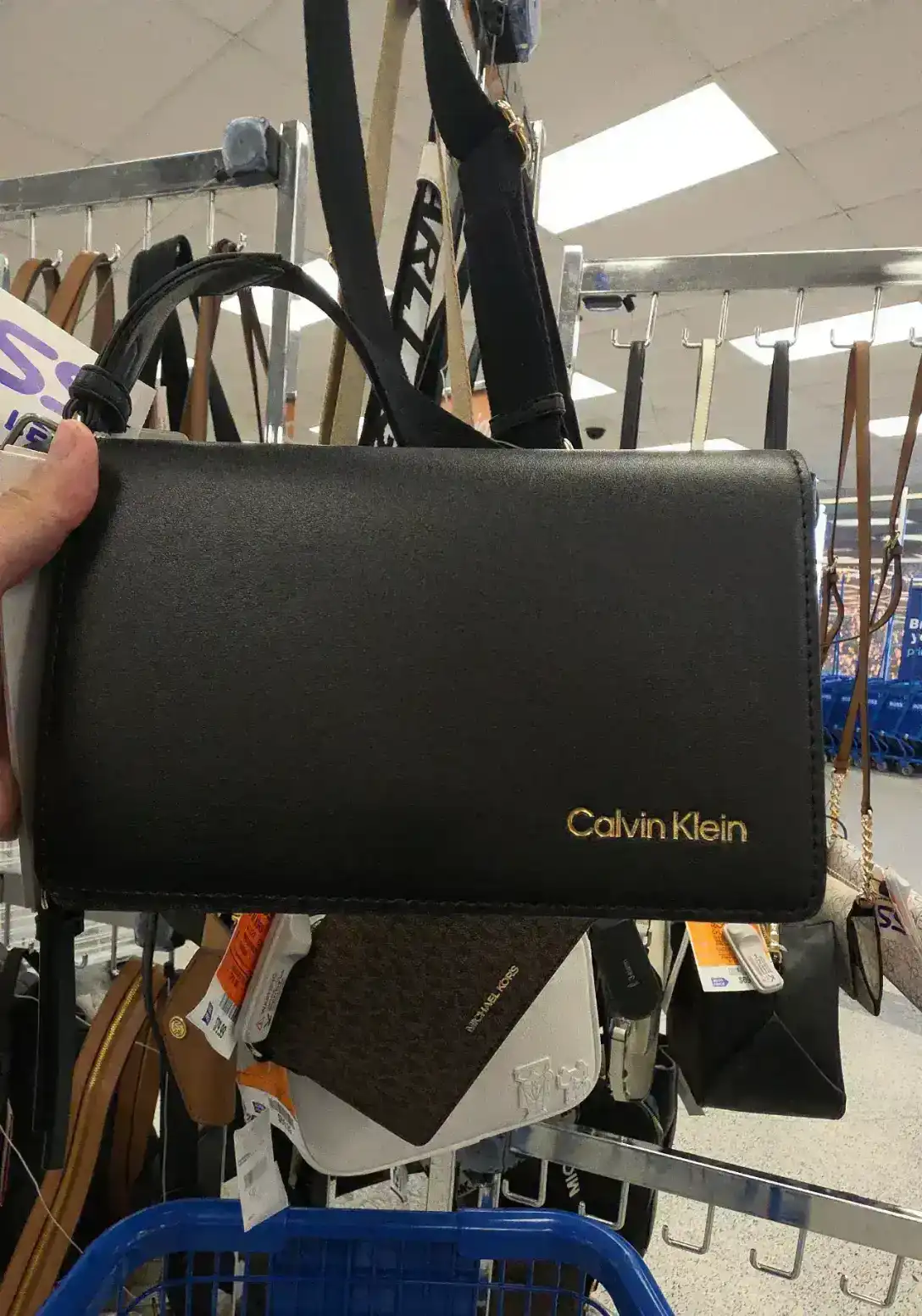 A sleek black wallet featuring a gold logo, perfect for everyday use.
