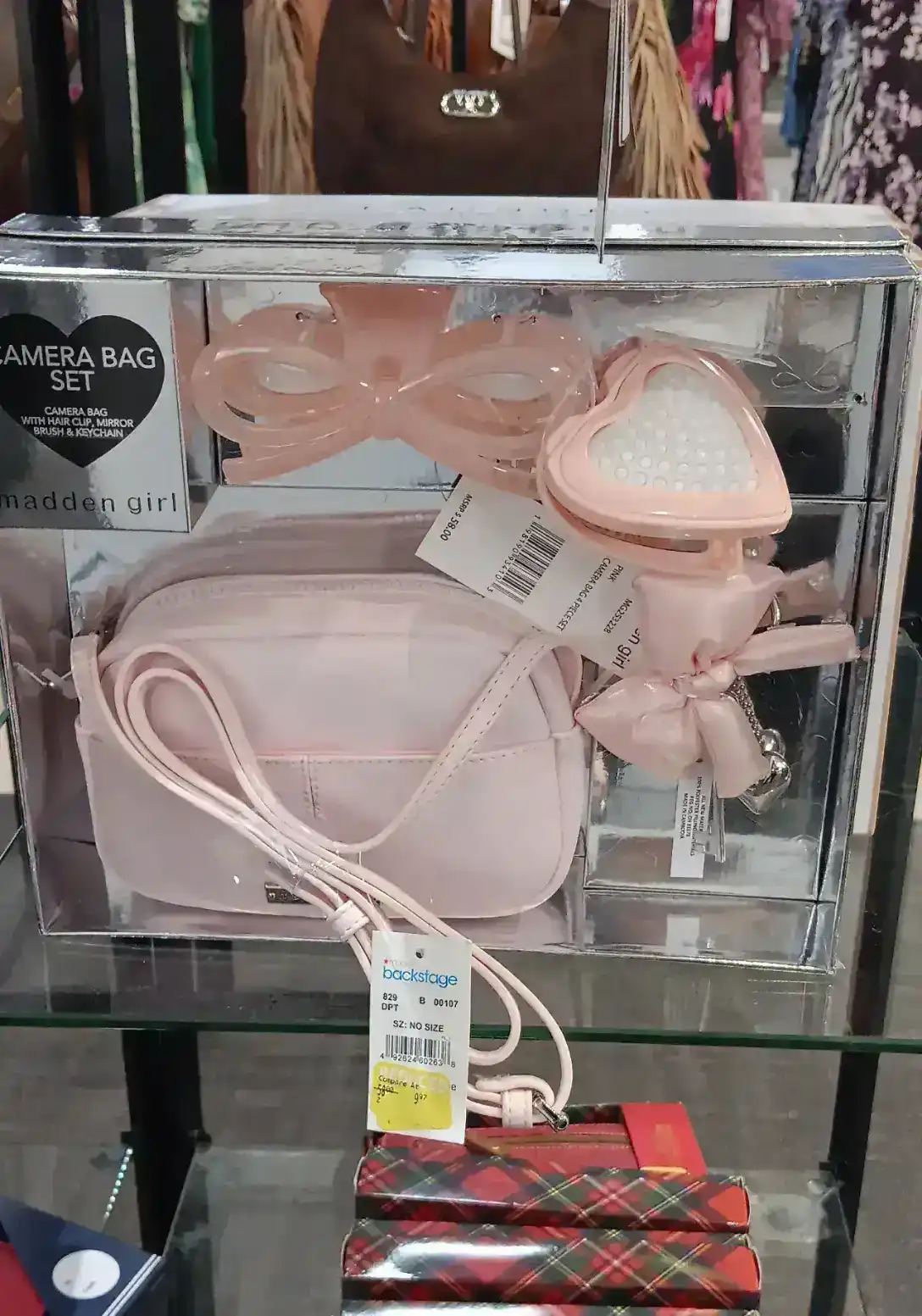 This stylish camera bag set includes a compact bag and a matching accessory, perfect for on-the-go photography enthusiasts. The soft pink color adds a trendy touch.