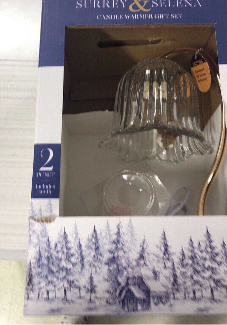 A decorative candle warmer set featuring a glass dome and a warming base, perfect for melting scented candles.