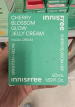 A facial cream designed to brighten and enhance glow, featuring cherry blossom extract.