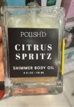 A shimmering body oil with a refreshing citrus scent, perfect for adding a touch of glow to your skin.