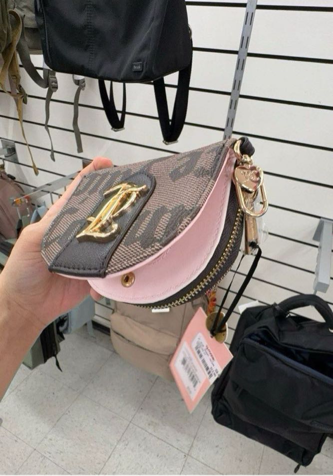 A stylish compact crossbody bag featuring a mix of brown and pink colors with a gold-tone clasp.