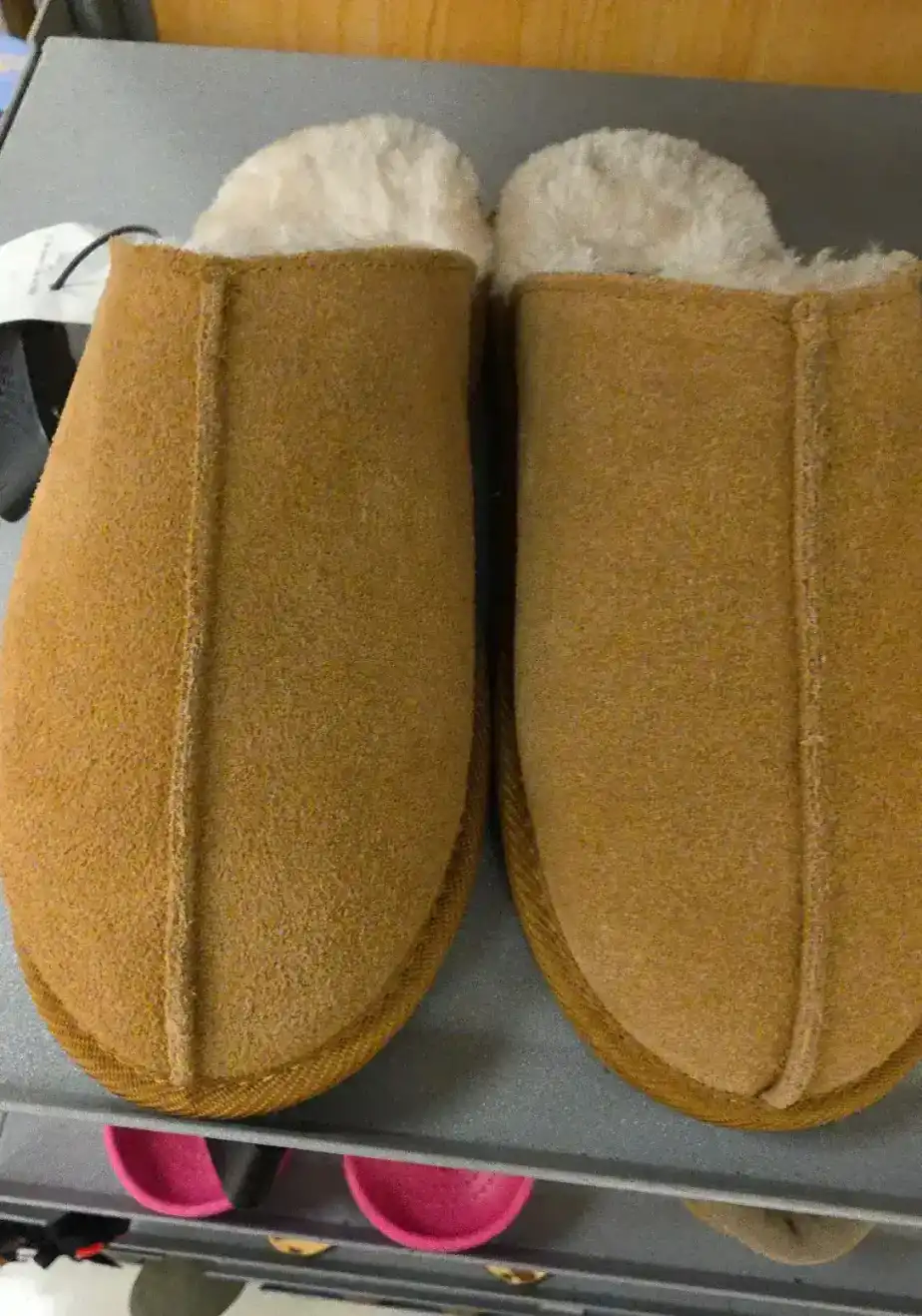 Soft, warm slippers with a plush lining, perfect for indoor comfort.
