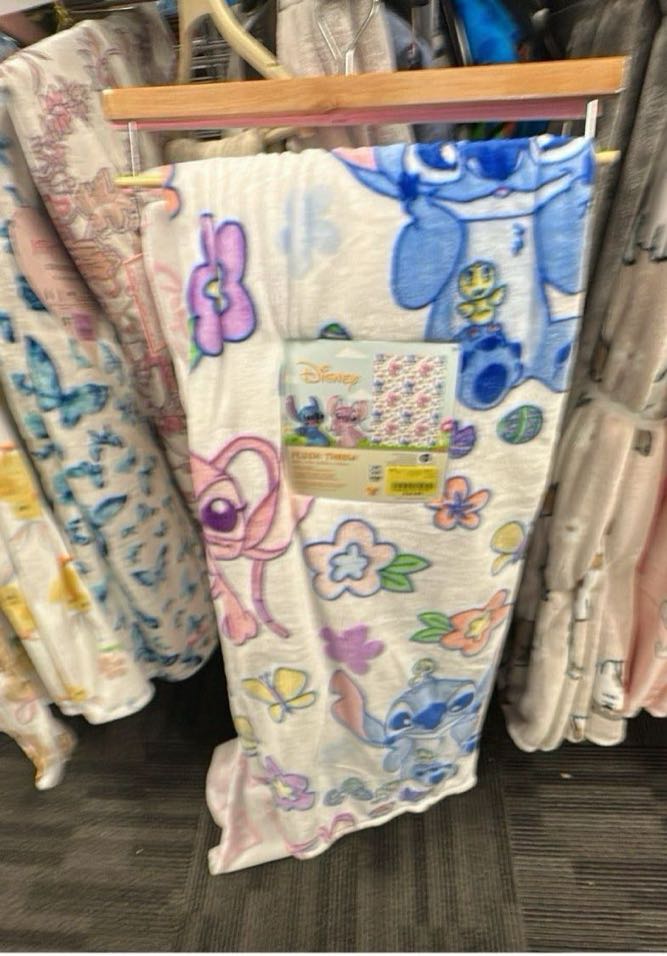 A cozy throw blanket featuring colorful designs of Disney’s Stitch and floral patterns. Perfect for adding a touch of fun to your living space.