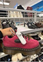 These vibrant pink platform sneakers feature a lace-up design and a thick, transparent sole, perfect for adding a pop of color to any outfit.