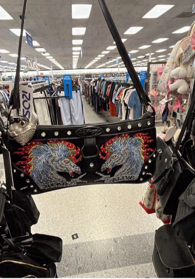 A stylish Ed Hardy handbag featuring vibrant designs and a unique aesthetic. Perfect for adding a bold touch to any outfit.