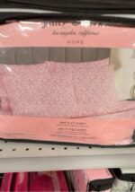 A pink floral sheet set including one flat sheet, one fitted sheet, and two standard pillowcases.
