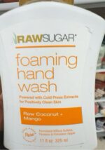 Raw Sugar foaming hand wash with cold press extracts, featuring a refreshing coconut and mango scent.