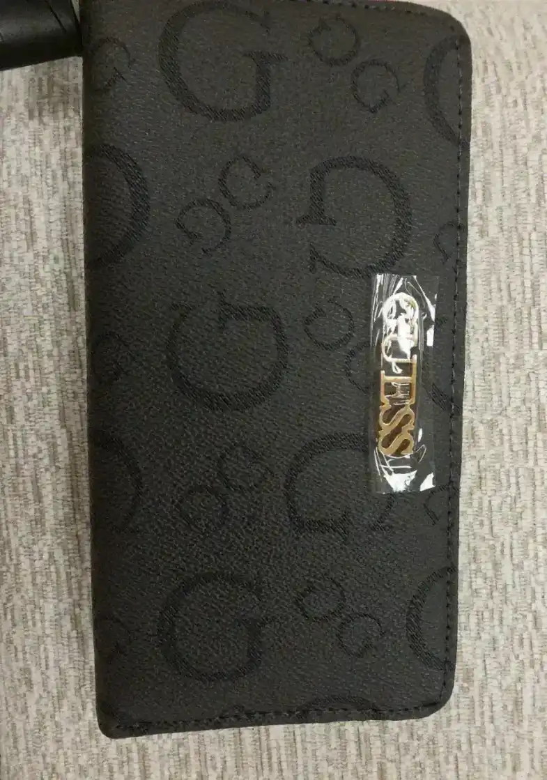 A stylish wallet featuring a GG monogram pattern with a gold-tone logo.