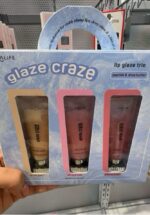 A set of three lip glazes featuring peptide and shea butter for hydration and a plump look.