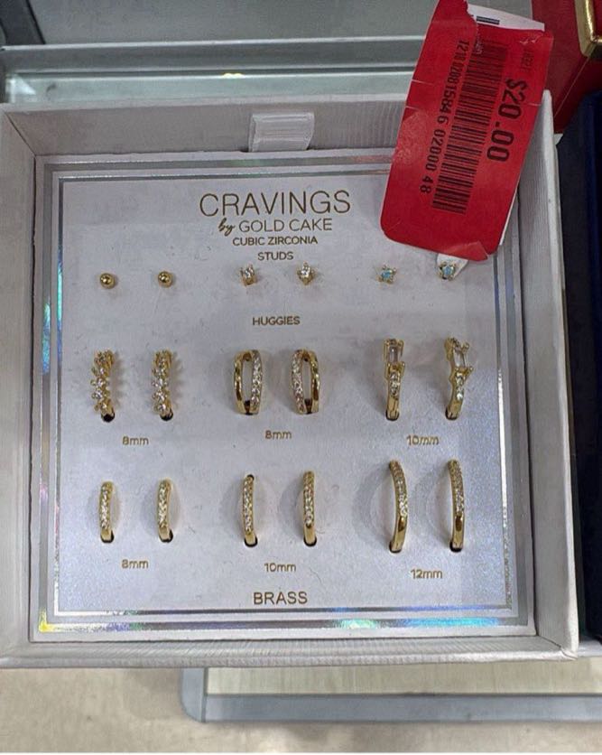 A set of assorted earrings including huggies and cubic zirconia studs in various sizes.