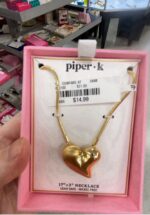 A stylish gold heart-shaped necklace with an adjustable chain.