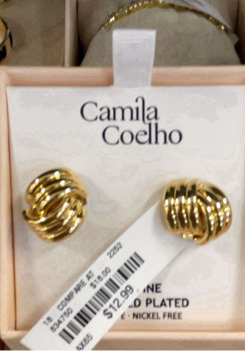 Stylish gold plated earrings featuring a twisted design.