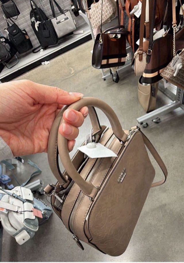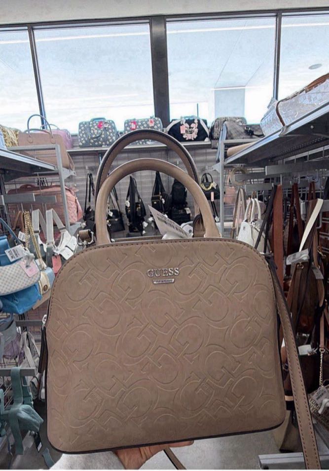 A stylish structured handbag from Guess, featuring a textured surface and dual handles. Perfect for everyday use or special occasions.