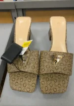 Stylish heeled sandals featuring a signature Guess logo and a chic design.