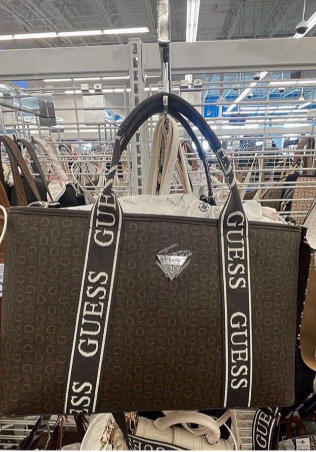 A stylish tote bag featuring the Guess logo and a detachable strap for versatility. Perfect for everyday use or as a chic accessory.