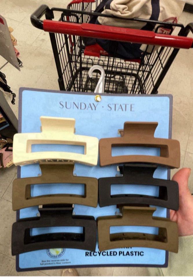 A set of six hair clips in various colors, made from recycled plastic.