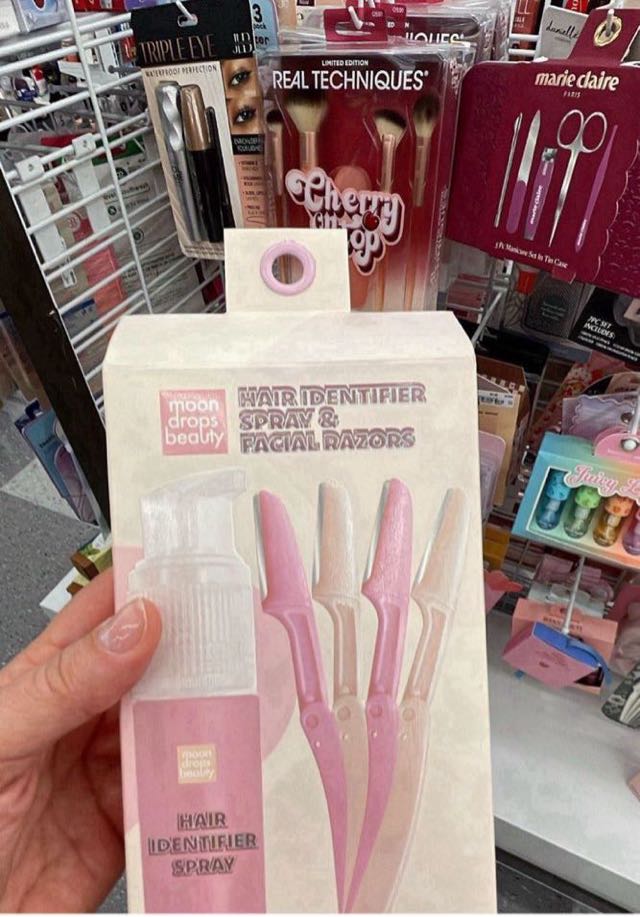 A set including hair identifier spray and facial razors, designed for easy grooming.