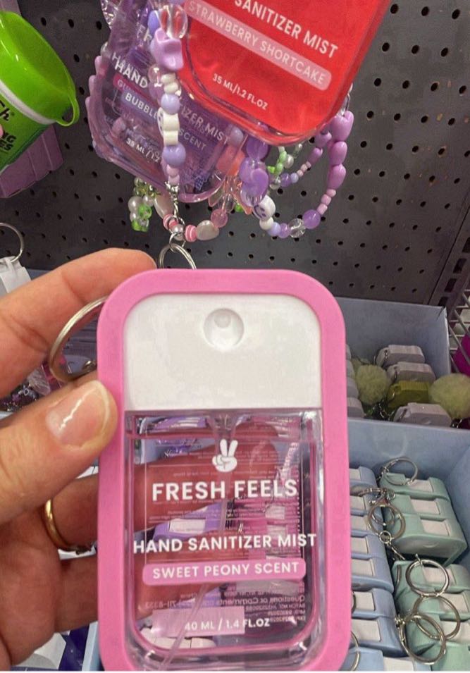 Fresh Feels Hand Sanitizer Mist in Sweet Peony scent, designed for convenient use on the go.