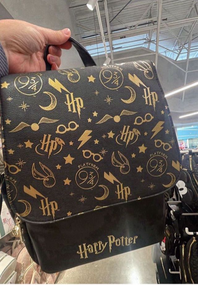 A stylish backpack featuring iconic Harry Potter symbols and designs, perfect for fans of the series.