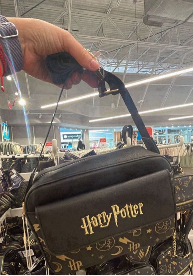 A stylish black crossbody bag featuring the iconic Harry Potter logo and themed designs. Perfect for fans looking to carry their essentials with a touch of magic.