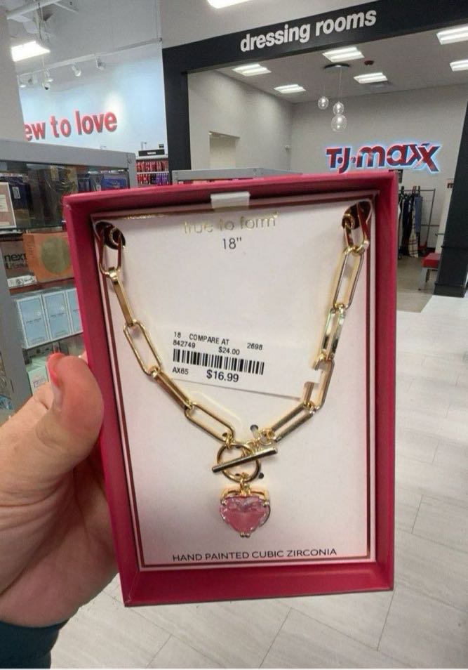 A stylish gold-tone necklace featuring a heart-shaped pendant adorned with cubic zirconia.
