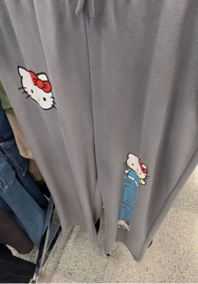 Comfortable gray sweatpants featuring Hello Kitty graphics.