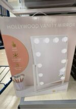 A stylish vanity mirror featuring touch sensor controls and 12 dimmable LED lights with multiple color settings.