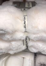 A plush faux fur pillow with a soft texture, featuring a decorative ribbon.