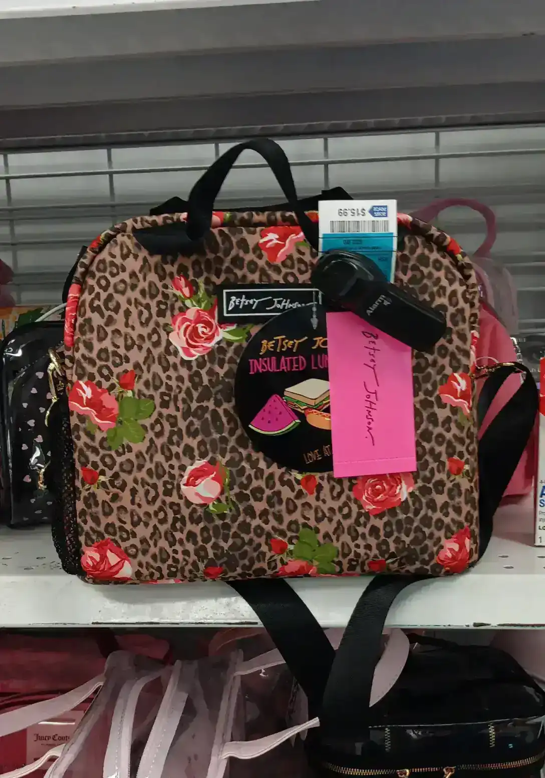 Betay Johnson A stylish insulated lunch bag featuring a floral and leopard print design, perfect for keeping food fresh.
