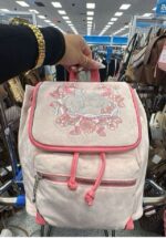 This stylish Juicy Couture backpack features a soft pink exterior with floral embroidery and adjustable straps. Perfect for everyday use or a casual outing.