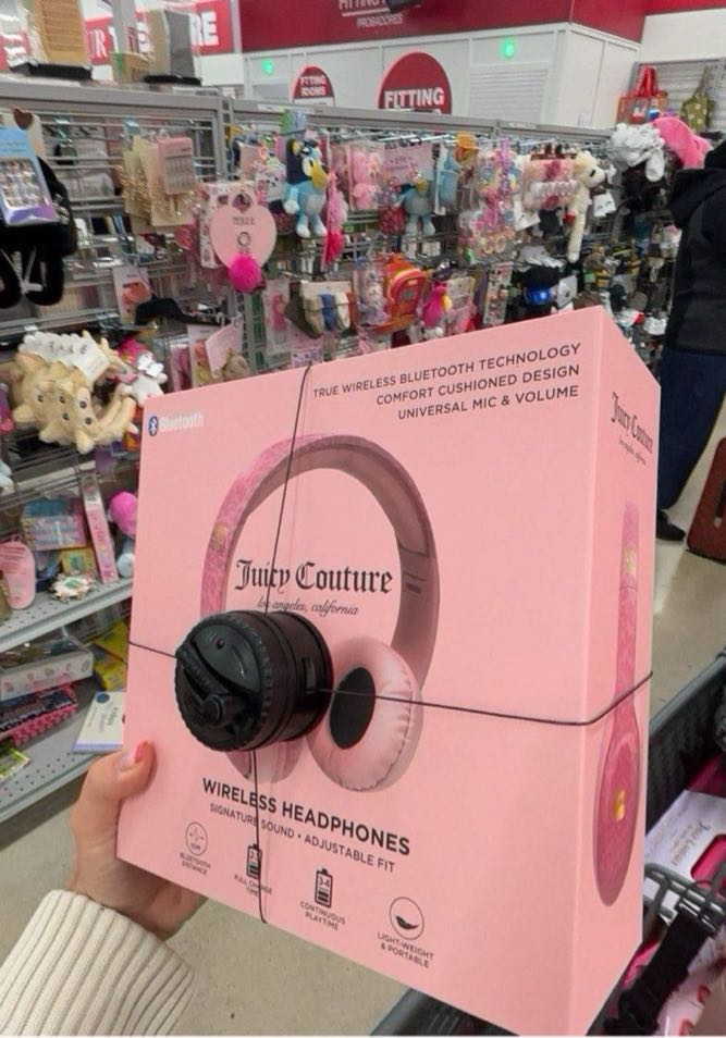 Juicy Couture wireless headphones featuring cushioned design and adjustable fit.