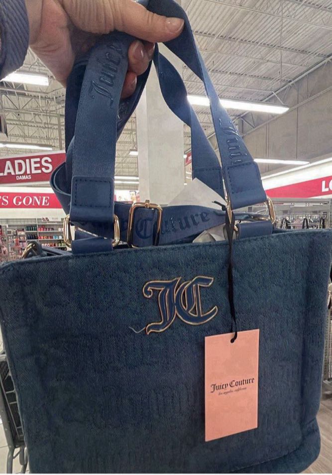 A stylish denim handbag featuring the Juicy Couture logo. Perfect for casual outings and everyday use.