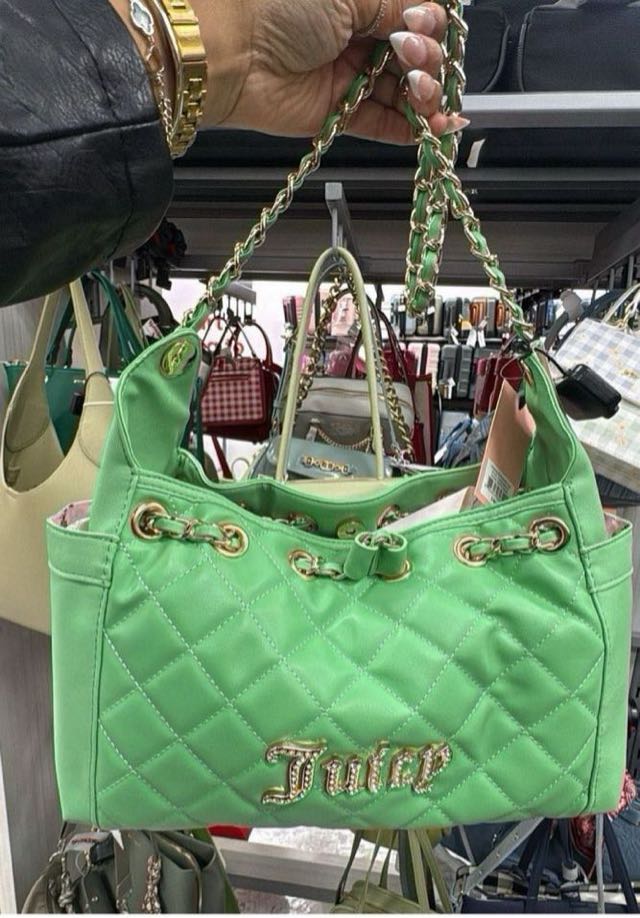 A stylish green handbag featuring a quilted design and gold-tone accents. Perfect for adding a pop of color to any outfit.