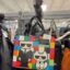 A stylish handbag featuring a striped design with the ‘Juicy’ logo prominently displayed. Perfect for adding a pop of color to any outfit.